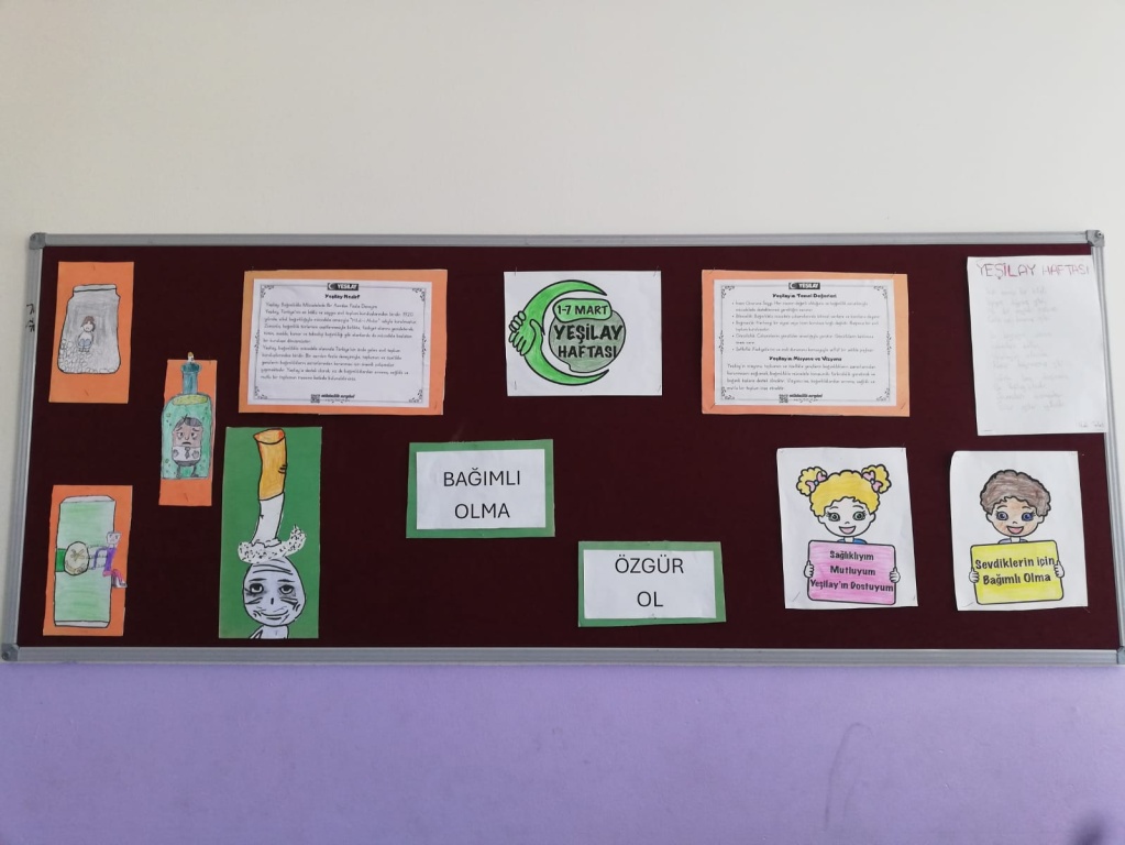 Yeşilay Haftası 1-7 Mart kapsamında okul geneli etkinlikler düzenlendi, panolarımız süslendi. Ayrıca 'Sağlıklı Nesil Sağlıklı Gelecek' kapsamıında yarışmaya eserler ile katılım gösterildi.